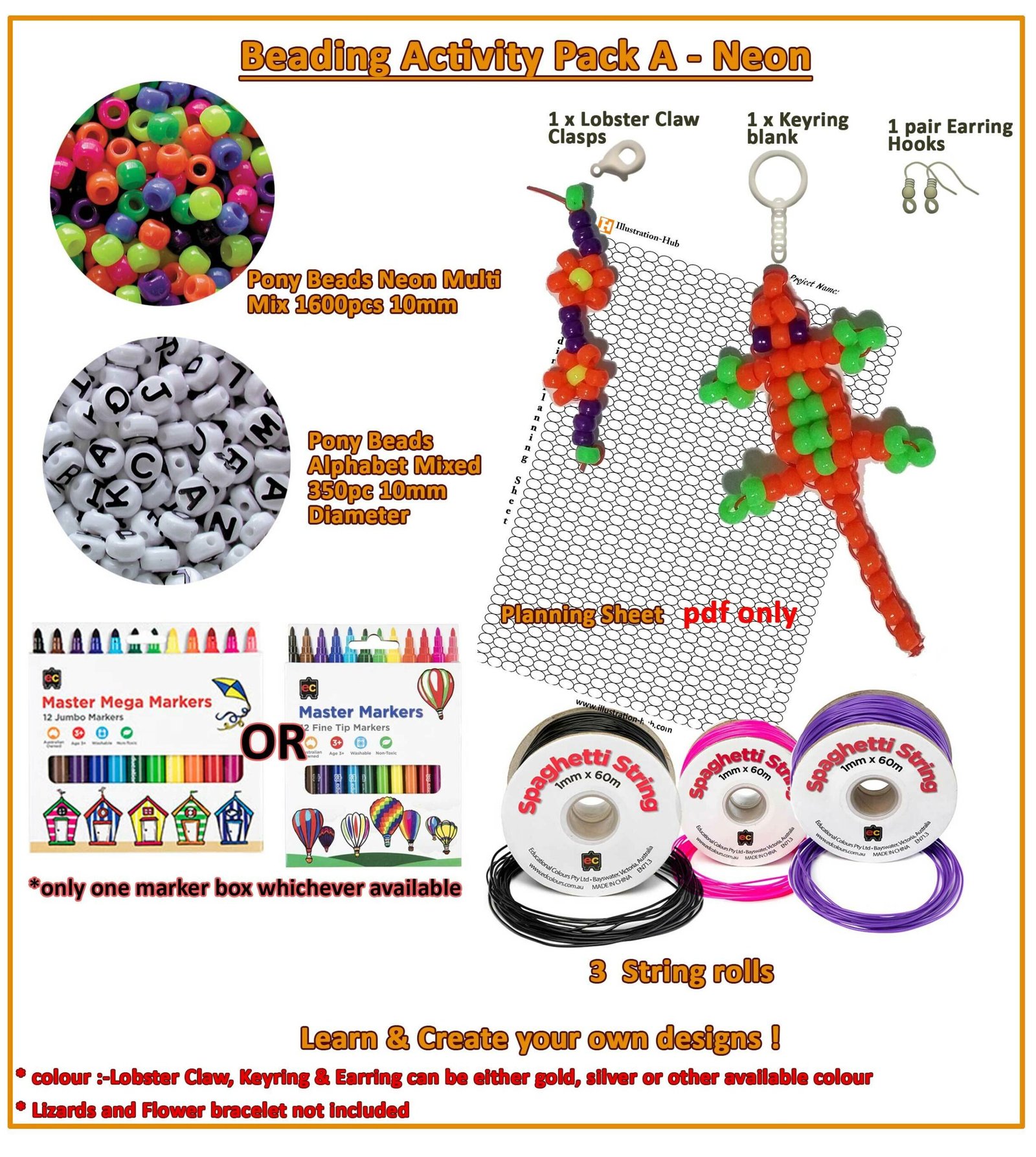- Spaghetti string: 1 mm x 60m PVC tubing. Ideal for threading Educational Colours Pony, Alphabet, Pet, Marine and Safari Beads.
