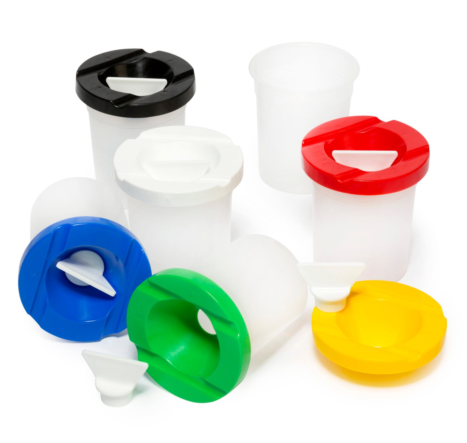 - The lid has 2 grooves to rest brushes on, keeping them off the table or easel. Pots can be filled with either water or paint.