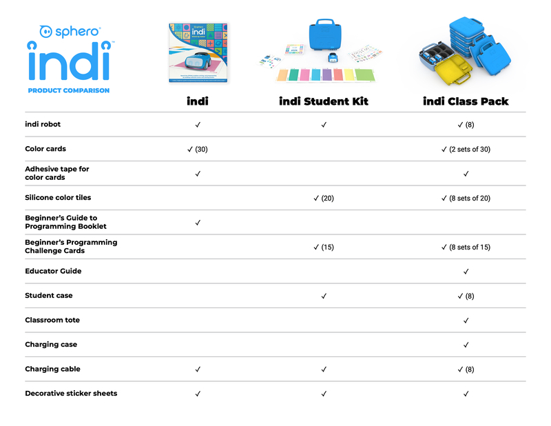 - indi Student Kit is the perfect addition to the indi Class Pack for more robots and materials.